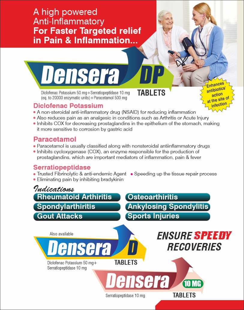 |  | ACEDEN  SP  TAB | Aceclofenac 100 mg + Paracetamol 325 mg + Serratiopeptidase 10 mg | ALU-ALU | 10 x 10 |  |  |