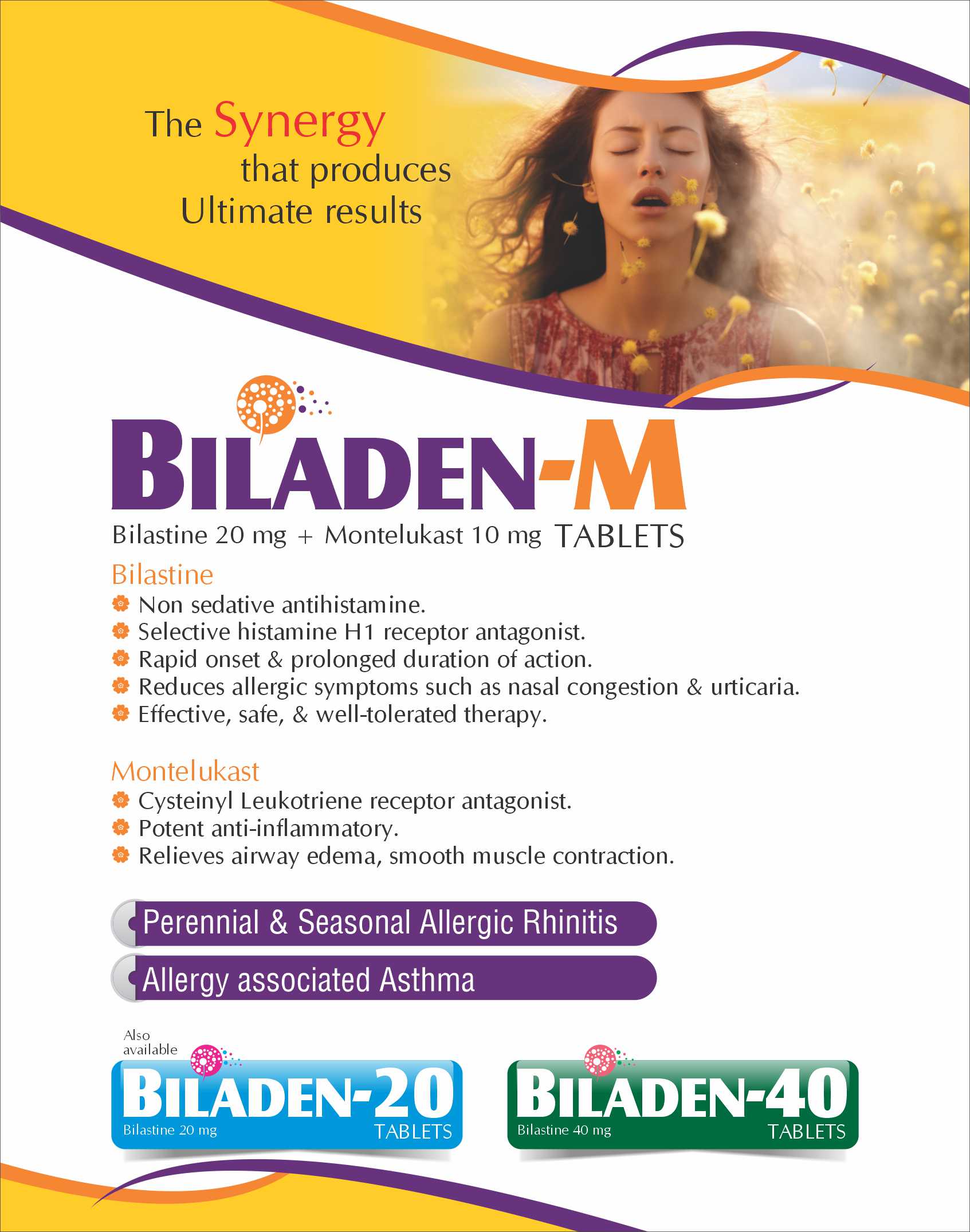 |  | BILADEN  M  TAB | Bilastine 20 mg + Montelukast 10 mg | ALU - ALU | 10 x 10 |  |  |