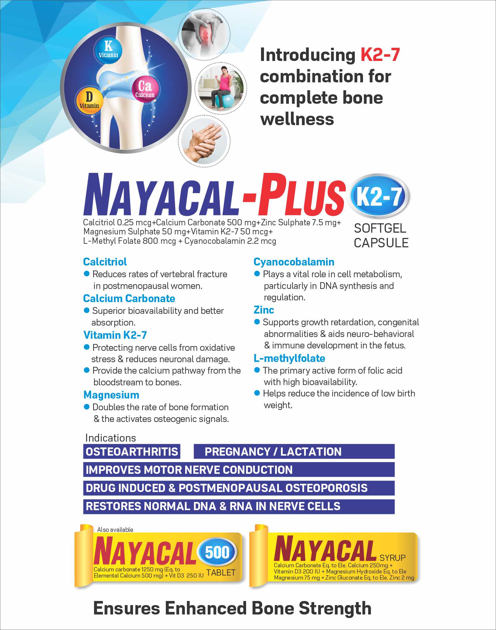 |  | CALFOSIT  CAP | Calcium citrate maleate 1000 mg + Cissus quadrangularis 500 mg + Vitamin K27 45 mcg + vitamin D3 1000 IU + L-methyl folate 1 mg  (SOFT GEL) | BLISTER | 10 X 1 X 10 |  |  |