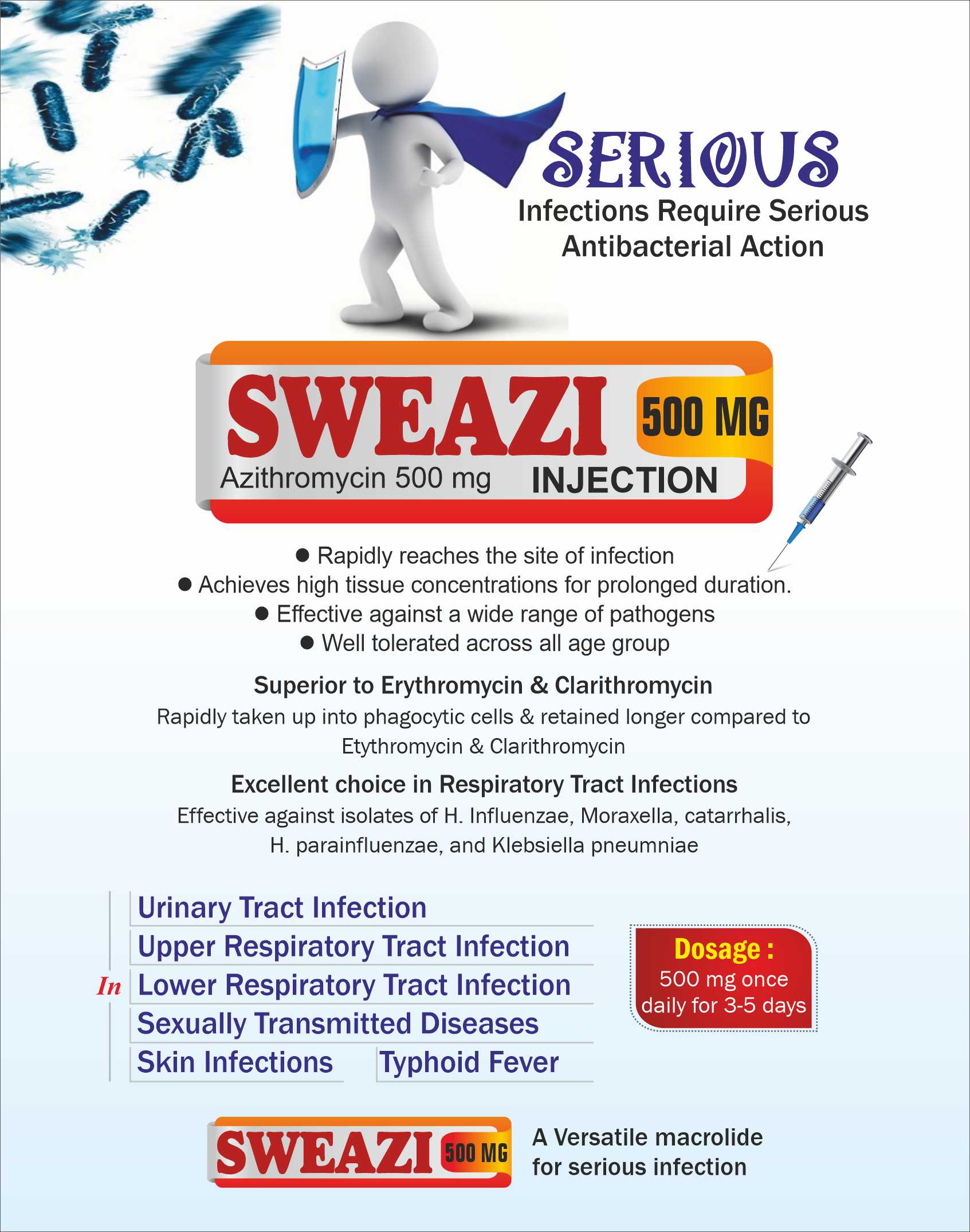 |  | SWEAZI  INJ  500  MG | Azithromycin Anhydrous 500 mg | OUTER  BOX | VIAL |  |  |